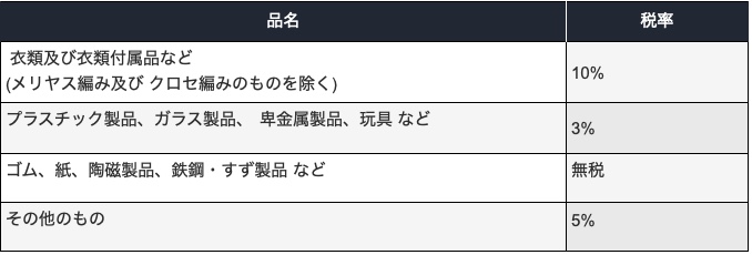 ※簡易税率とは、20万円以下の少額の輸入貨物の通関の際に適用される簡易な税率のことです。