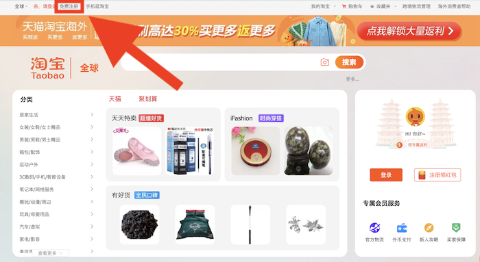 まず、タオバオのウェブサイトにアクセスしましょう。