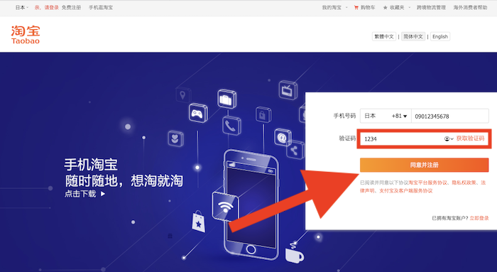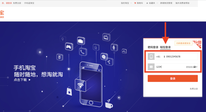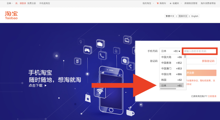 多くの場合、タオバオの登録には中国の電話番号が必要ですが、一部の国の電話番号も受け付けています。