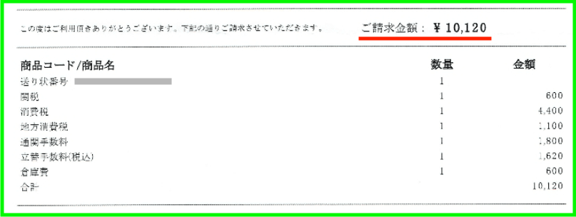 商品がお手元に届いてから後日郵送で請求書を送ってくる通関業者もいます。
