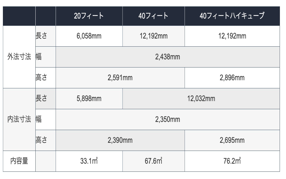 ※上記寸法は参考値です。コンテナメーカーによって若干変わる場合があります。