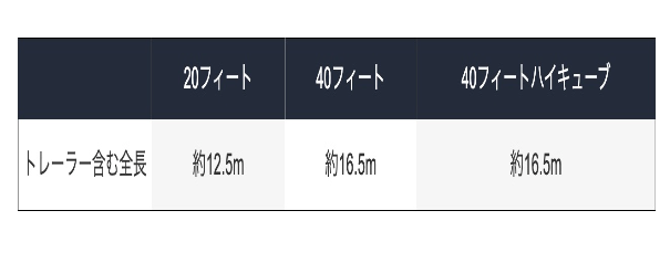 コンテナで輸入して港からトレーラーで引張ってきたものの、倉庫を目前に最後の曲がり角で曲がり切れず、困ったことになることもありますので事前確認が必要なとてもとても大事なポイントです。