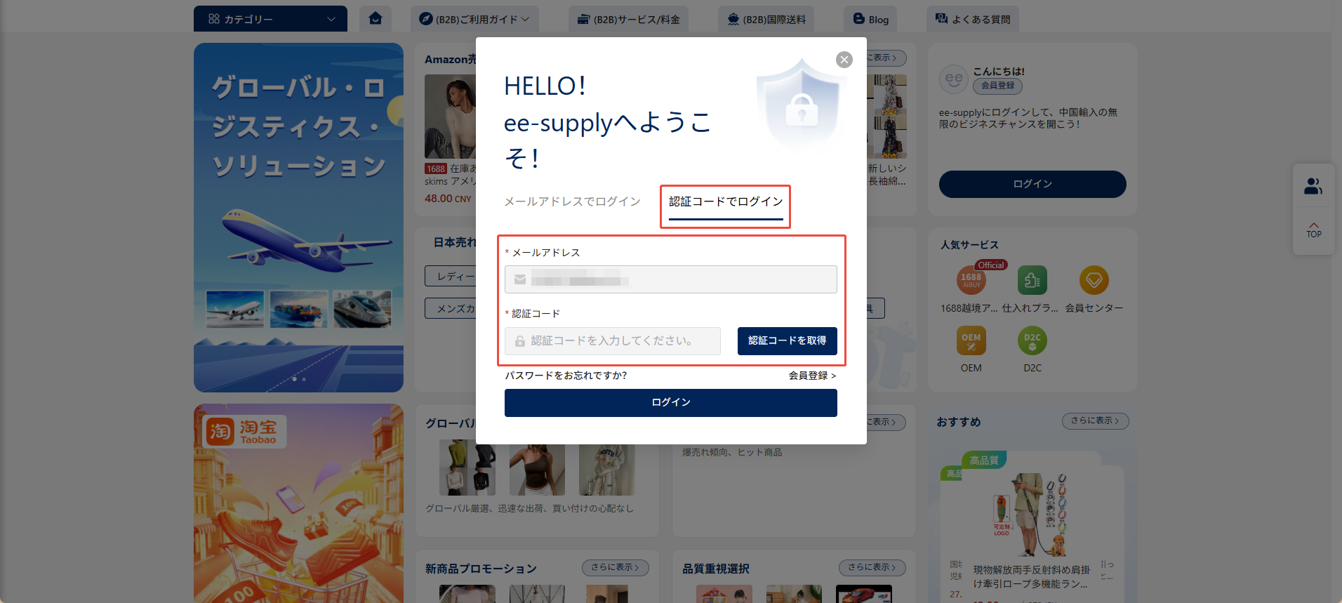 認証コードを取得し、受信したコードを入力したうえで「ログイン」をクリックすると、そのままサイトにログインできます。